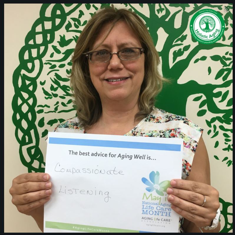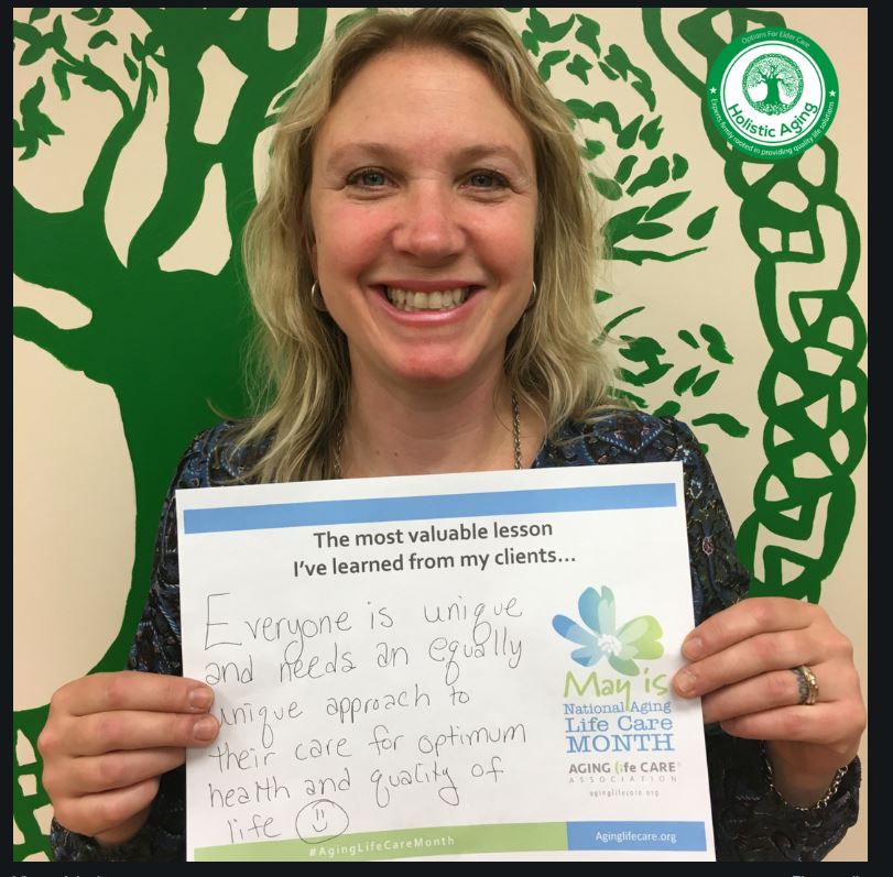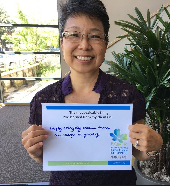 Many took to social media to share Aging Life Care stories via selfies and videos. Each week, ALCA asked members to share something from their world as Aging Life Care Professionals. During the month, several common themes emerged – a passion for helping families through difficult times, an appreciation for the wisdom of an older generation, resiliency, advocacy, care, and the need for daily hope and laughter. Below is a look at some of the photos shared during #AgingLifeCareMonth.